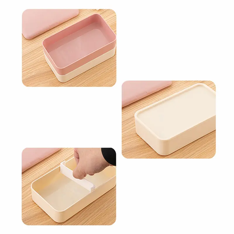 กล่องใส่อาหาร 2 ชั้น พร้อม ช้อน ส้อม และ มีด ด้านใน
