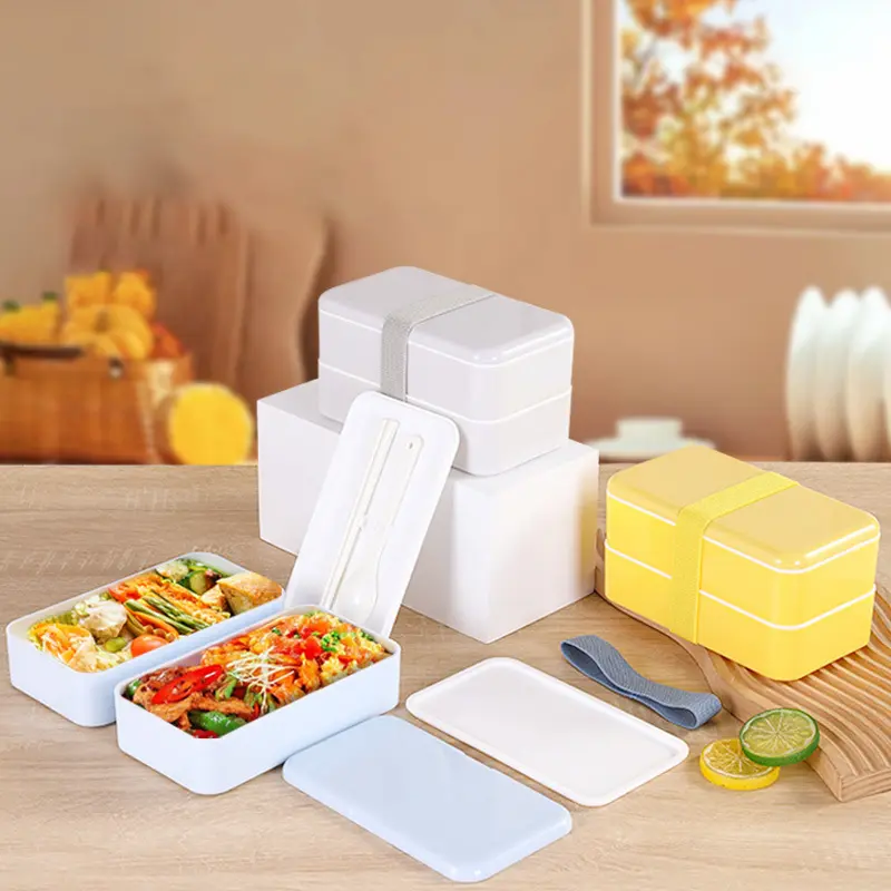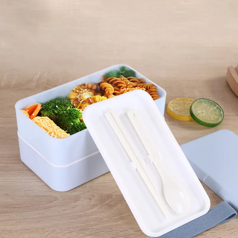 กล่องใส่อาหาร 2 ชั้น พร้อม ช้อน และ ตะเกียบ ด้านใน