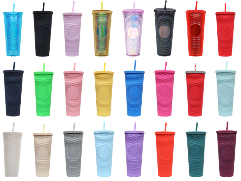 แก้วพลาสติก 2 ชั้น ดีไซส์หนาม ทรง Starbucks หลากหลายสี ความจุ 710 มล.